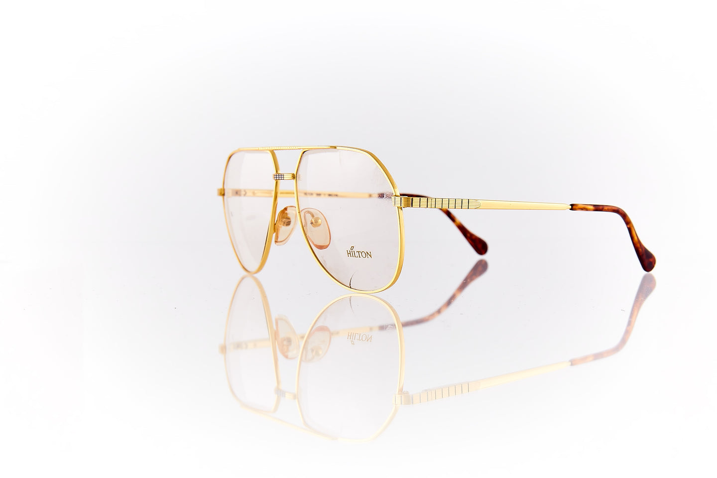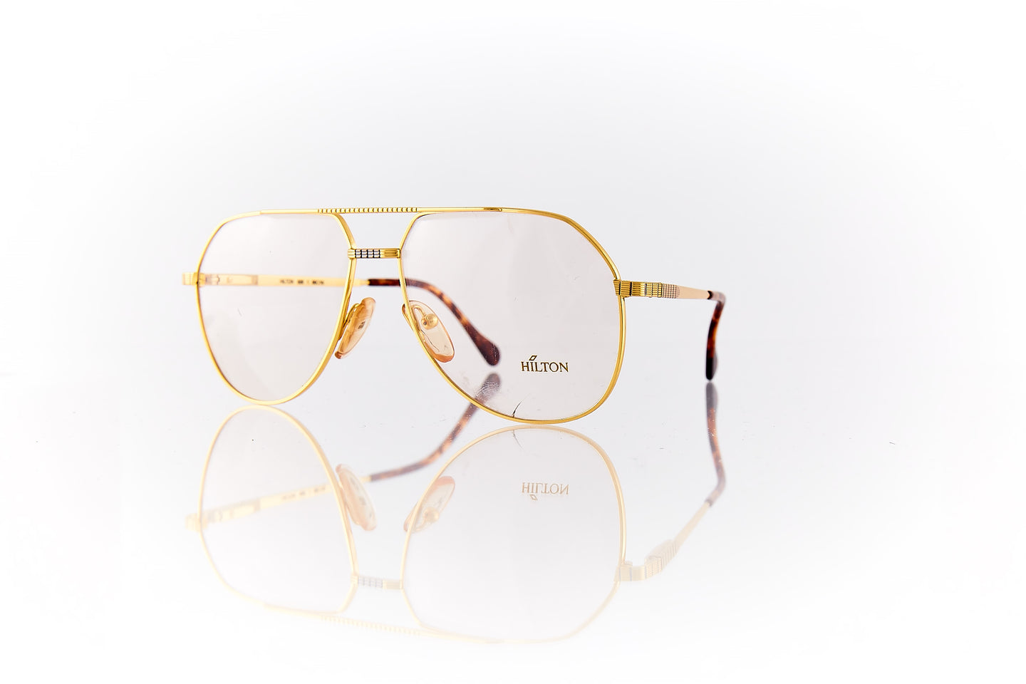 SHINY GOLD FRAME WITH NOSE BRIDGE ENGRAVINGS WITH ENGRAVING RUNNING THROUGH FRAME HINGE AND TEMPLE