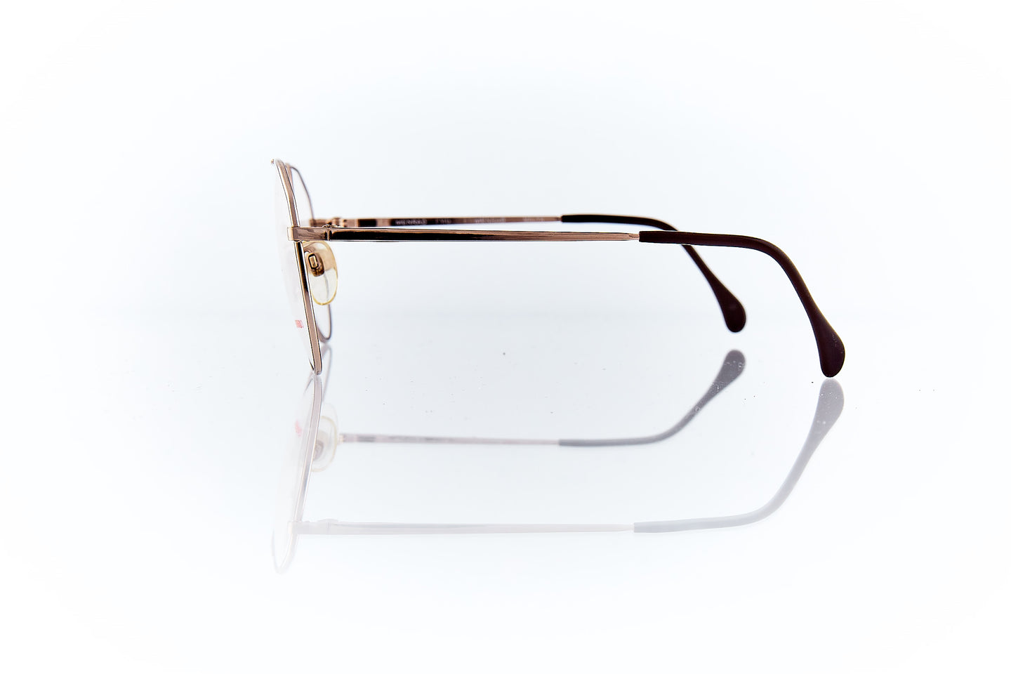 SHINY LIGHT GOLD FRAME WITH NOSE BRIDGE ENGRAVINGS WITH GOLD RUNNING THROUGH FRAME HINGE AND TEMPLE