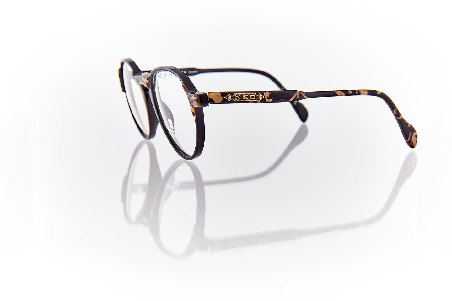 BLACK & GOLD FRAME WITH NOSE BRIDGE ENGRAVINGS WITH ENGRAVING RUNNING THROUGH FRAME HINGE AND TEMPLE