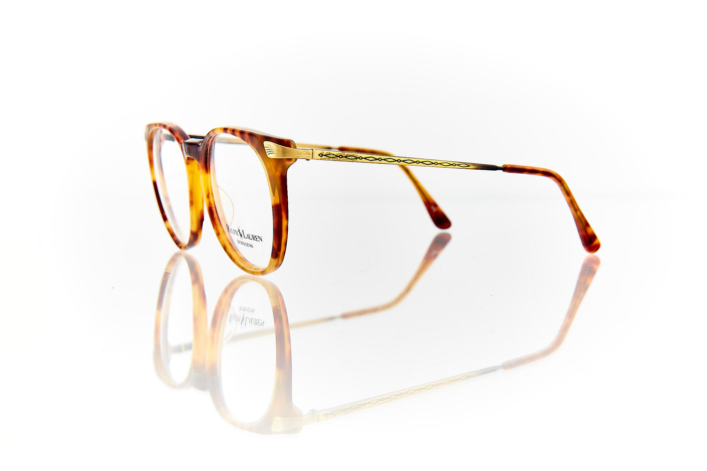 DESCRIPTION: TORTOISE SHELL COLORED FRAME WITH ENGRAVING RUNNING THROUGH FRAME HINGE AND TEMPLE