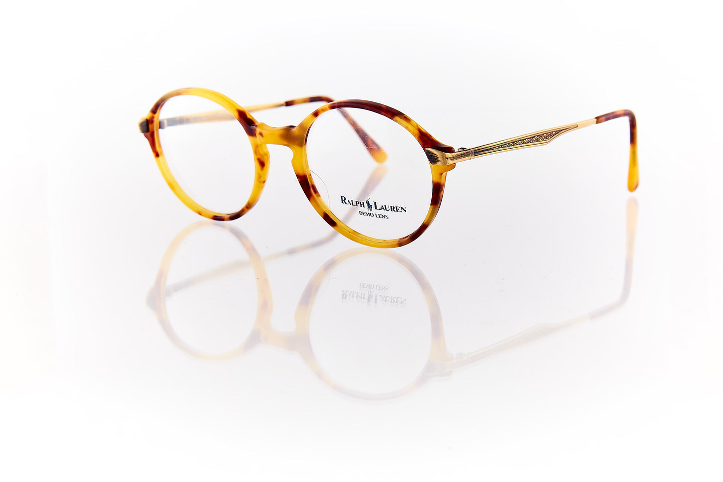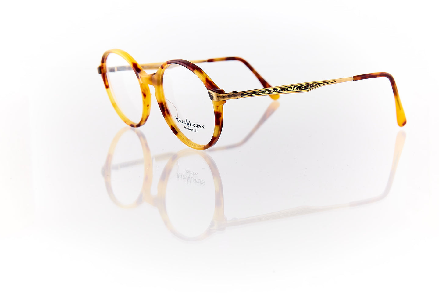 TORTOISE SHELL COLORED FRAME WITH ENGRAVING RUNNING THROUGH FRAME HINGE AND TEMPLE