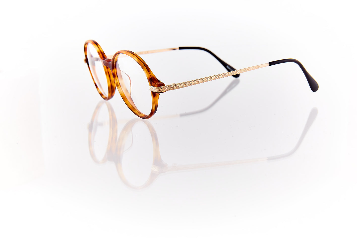 HAVANA FRAME WITH GOLD ENGRAVING RUNNING THROUGH FRAME HINGE AND TEMPLE