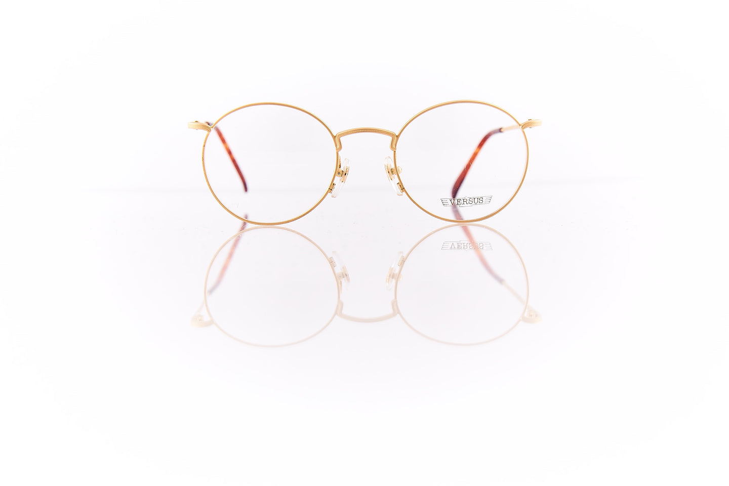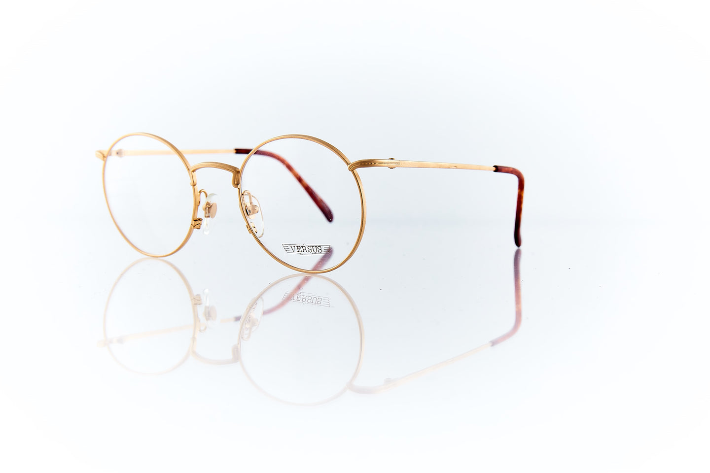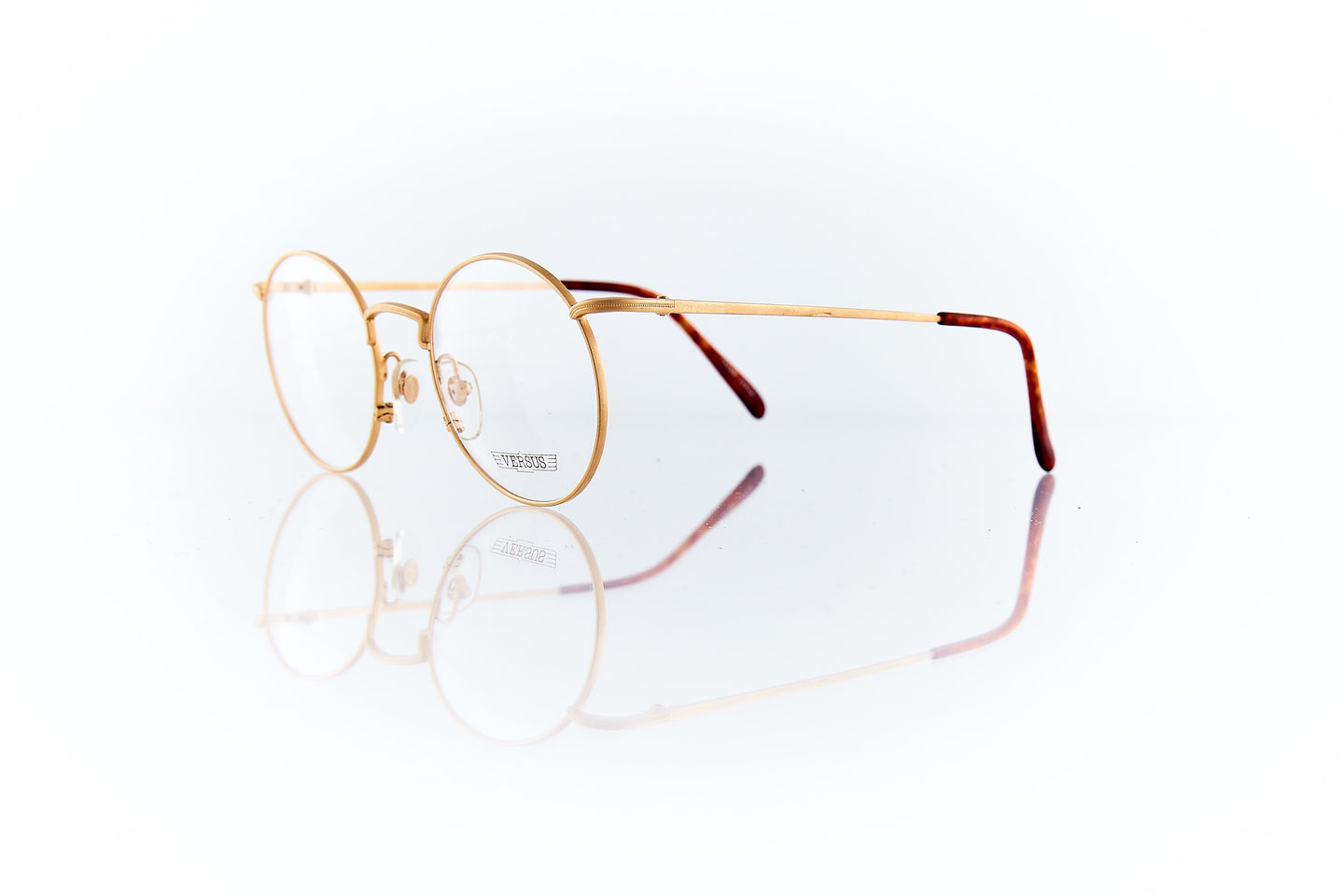 MATTE GOLD PAINTED FRAME WITH NOSE BRIDGE ENGRAVINGS & ENGRAVING RUNNING THROUGH FRAME HINGE AND TEMPLE