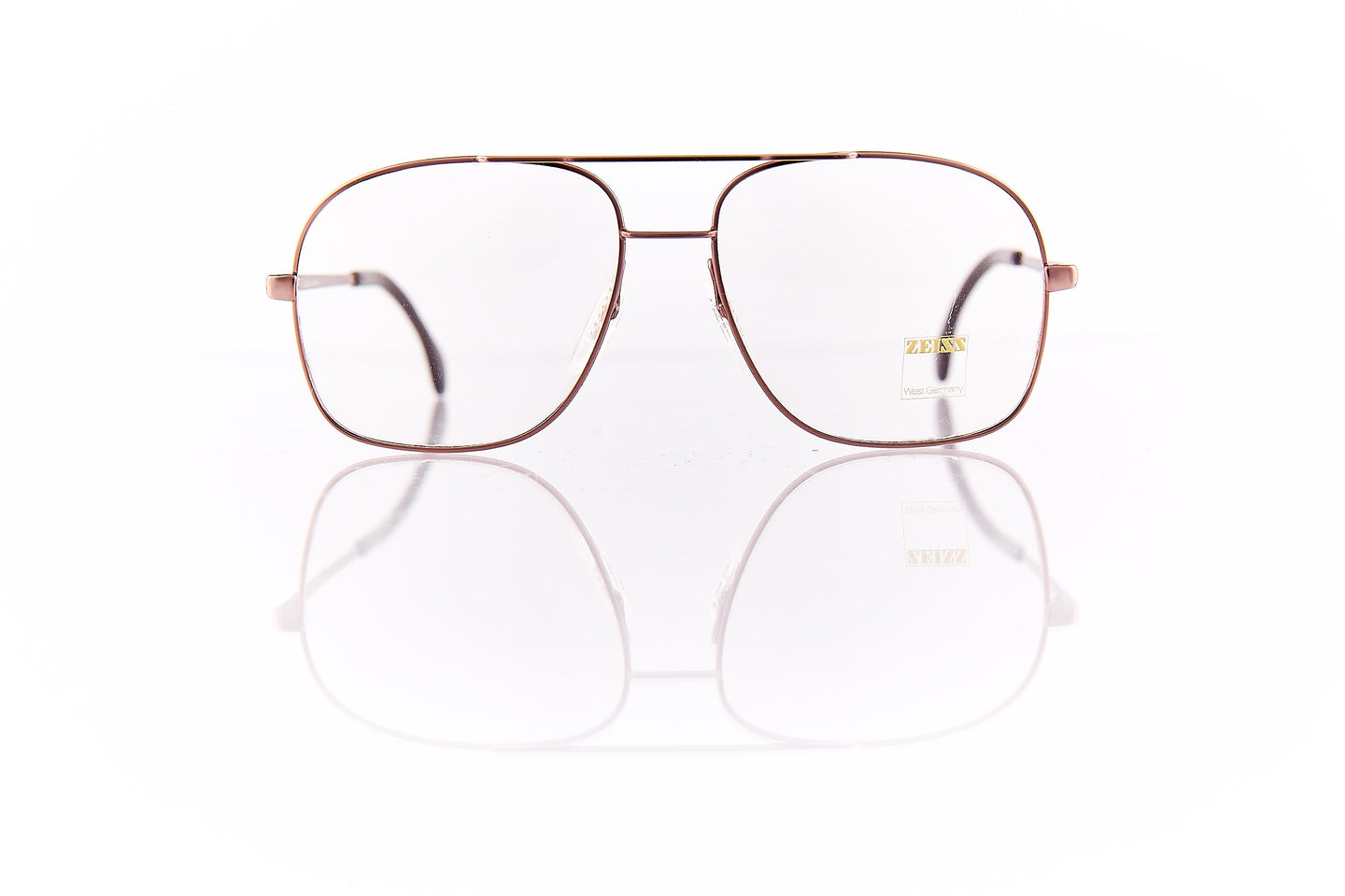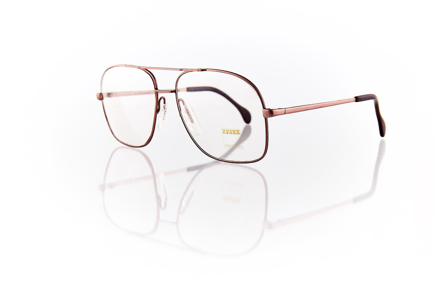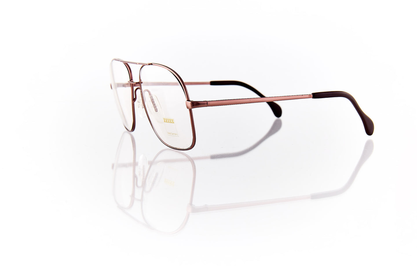 MATTE ROSE BRONZE PAINTED FRAME WITH DOUBLE NOSE BRIDGE. METAL FRAME HINGE AND TEMPLE