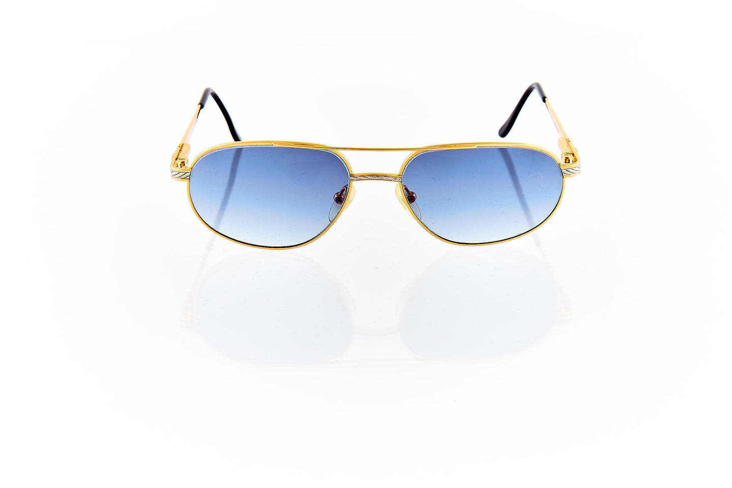 SHINY GOLD FRAME WITH ROPE NOSE BRIDGE ENGRAVINGS WITH ENGRAVING RUNNING THROUGH FRAME HINGE AND TEMPLE