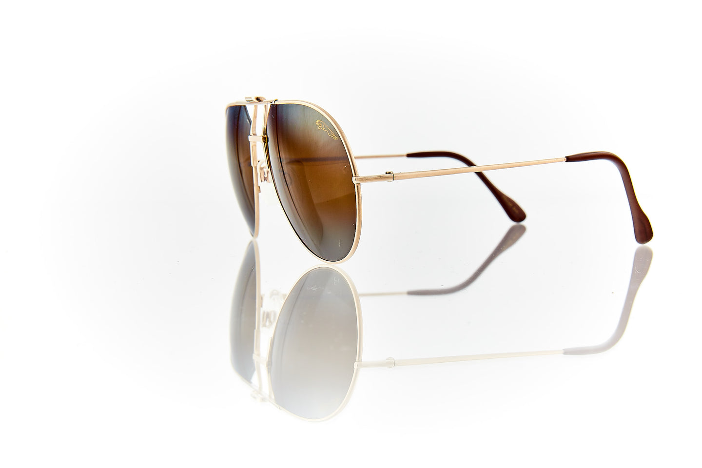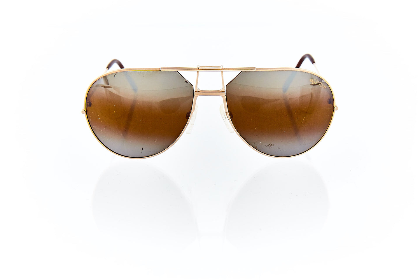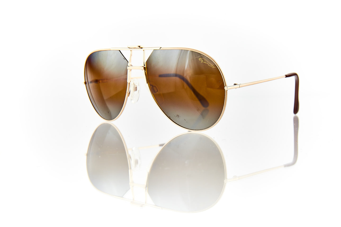 SHINY GOLD FRAME WITH LOCK NOSE BRIDGE HINDGE. JAGUAR ENGRAVING RUNNING THROUGH FRAME HINGE AND TEMPLE
