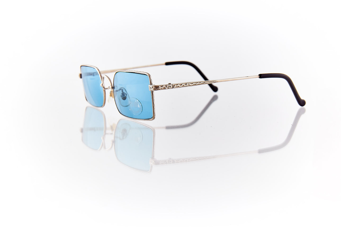 SILVER FRAME WITH NOSE BRIDGE ENGRAVINGS WITH ENGRAVING RUNNING THROUGH FRAME HINGE AND TEMPLE