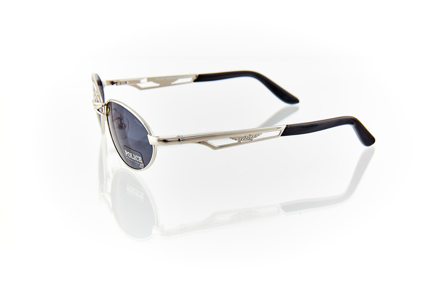 SHINY SILVER FRAME WITH CHROME NOSE BRIDGE ENGRAVINGS WITH ENGRAVING RUNNING THROUGH FRAME HINGE AND TEMPLE