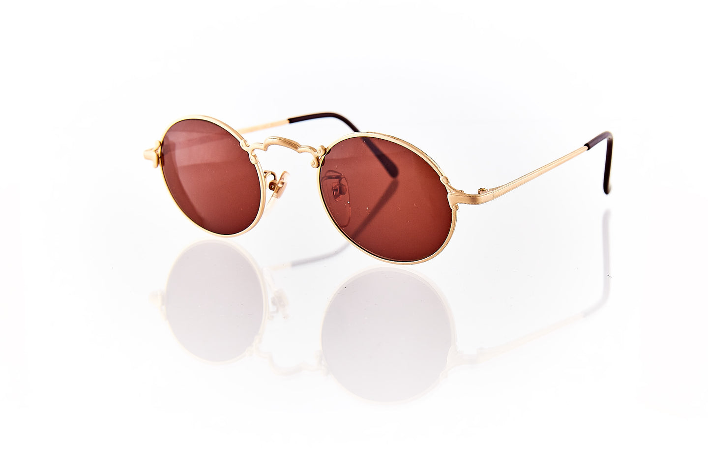 SHINY GOLD FRAME WITH NOSE BRIDGE ENGRAVINGS WITH ENGRAVING RUNNING THROUGH FRAME HINGE AND TEMPLE