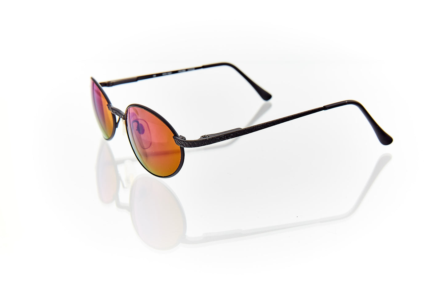 SHINY GOLD FRAME WITH NOSE BRIDGE ENGRAVINGS WITH ENGRAVING RUNNING THROUGH FRAME HINGE AND TEMPLE