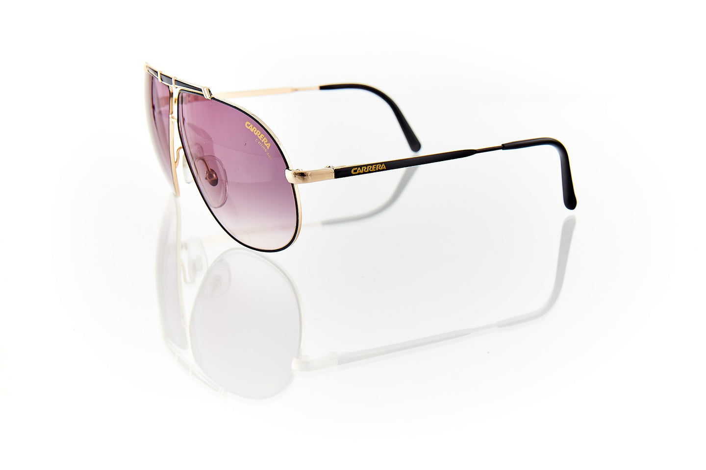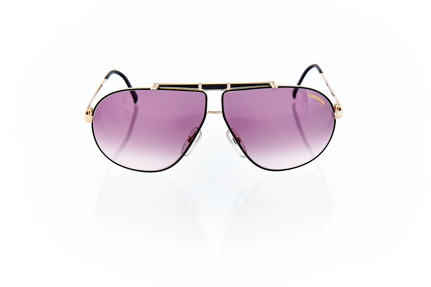 SHINY GOLD FRAME WITH NOSE BRIDGE ENGRAVINGS WITH ENGRAVING RUNNING THROUGH FRAME HINGE AND TEMPLE